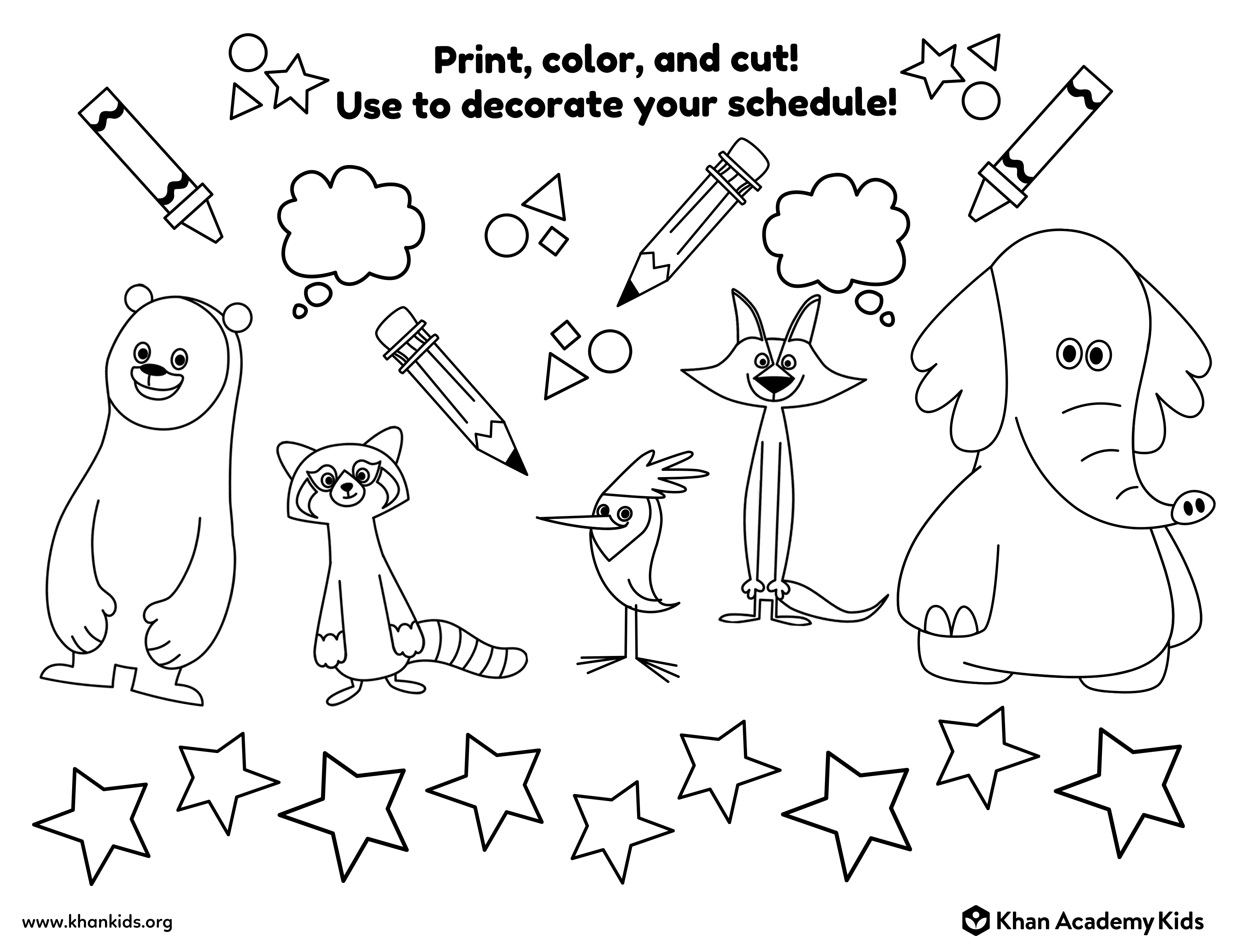 - Provide choices for each activity to give children an opportunity to express their preferences. For example, learning time may have the same two options each day: practice math on Khan Kids, or practice drawing letters. Change out the choices periodically to keep things engaging!